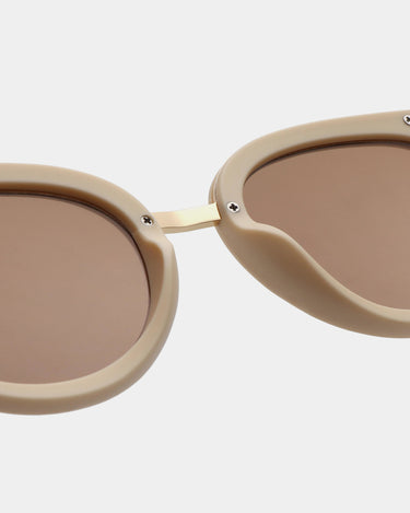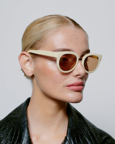 JOLIE is a feminine oversized model with a strong and energetic vibe. The frame is round with large lenses and is tied together by an elegant metal bridge. The design is inspired by French femininity, elegance, and extravagance.
