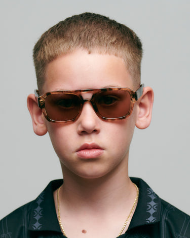 Our junior sunglasses are designed for children aged 6 - 12 years. All our glasses are made from BPA-free and nickel-free materials to avoid allergies. Kaya Junior is an oversized aviator frame inspired by the 70s. – UV 400 Protection – Polycarbonate lenses – High-quality optical hinges – Cleaning pouch included – Adjustable temples with metal core – BPA-Free – Eco-friendly material – More than 50% recycled materials Lens – 50 mm, bridge – 17 mm, temples – 130 mm