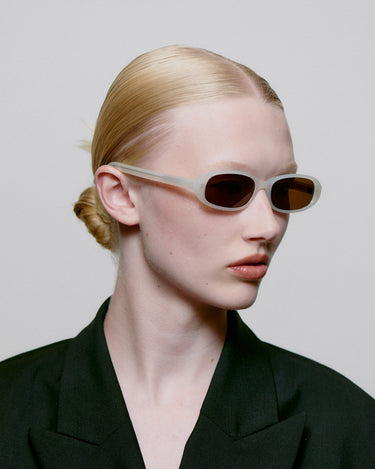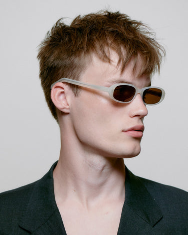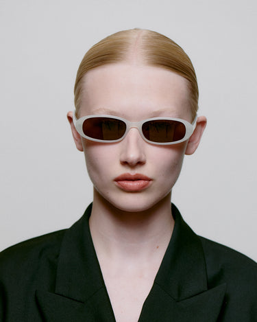 Macy is a super slim unisex model inspired by the 90s, designed with a slight upward effect, oval narrow lenses, and a soft rounded frame that adds a cool relaxed vibe.