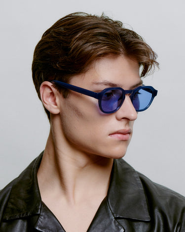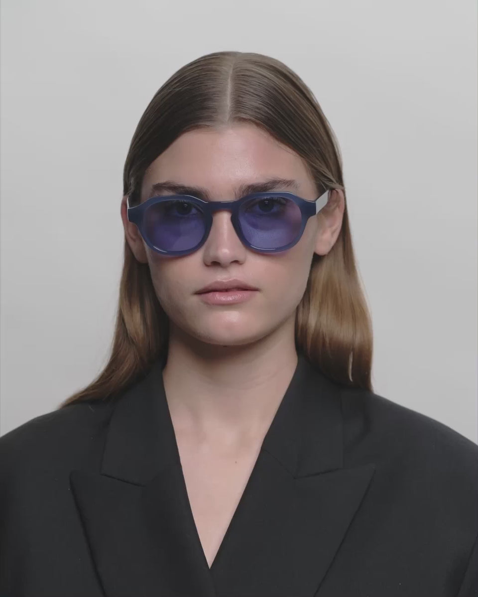 Zan - Blue Steel is a perpendicular interpretation of the classic round design. The shape creates a deliberate contrast between hard and soft, giving it a modern yet timeless look. Zan is an ideal unisex model because it typically fits most face shapes and acts as a strong everyday eyewear with character.