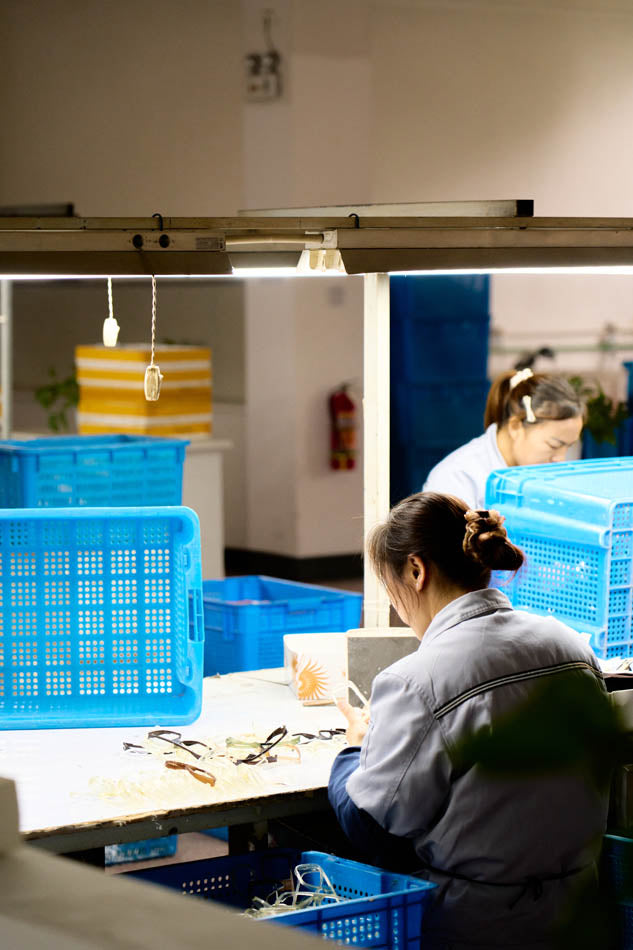 We have worked on increasing the amount of recycled materials in our sunglasses, but after several quality tests, we had to put it on hold because the materials became more porous. This would result in increased production, more defects, and reduced durability. We believe it is better to produce fewer high-quality products than to produce a larger quantity that would need to be discarded and be less durable.