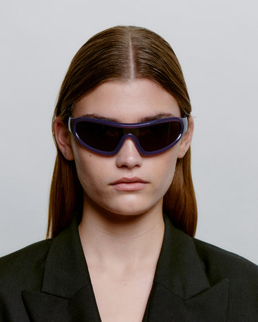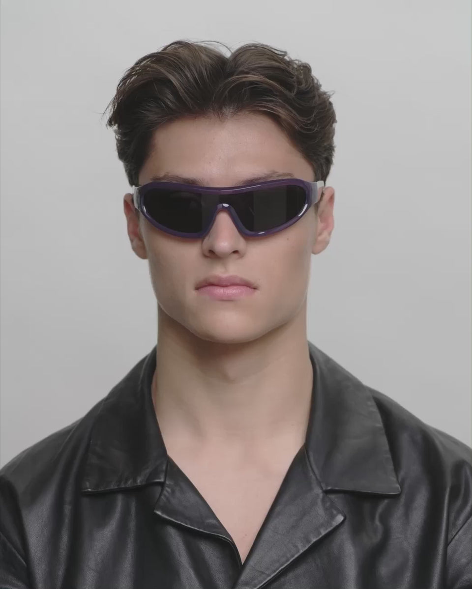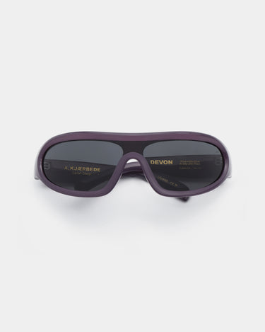 Devon - Shadow is a distinctive wraparound model with a sporty retro look. The curved design follows the face and combines fashion and function. A statement sunglass for active days and an urban everyday look.