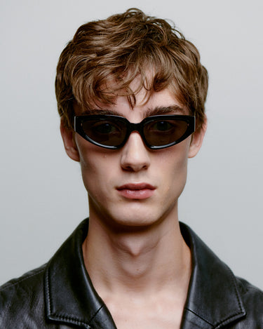 A slightly larger, classic yet trendy pair with narrow oval cateye lenses in an upright, robust frame with wide temples that together create a strong yet feminine look.
