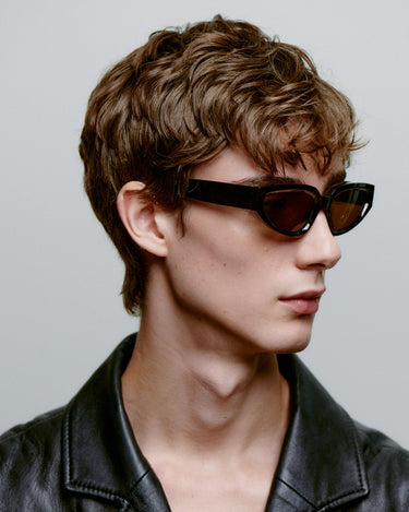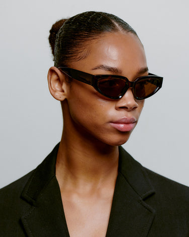 A slightly larger, classic yet trendy pair with narrow oval cateye lenses in an upright, robust frame with wide temples that together create a strong yet feminine look.