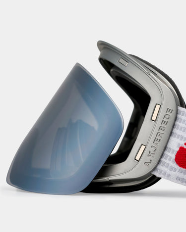 Enry - Matte Silver(A.KJÆRBEDE x ÖHOUSE) er en ski- og snowboardbrille, skabt til dig der vil have et rent, minimalistisk look - men med funktioner, der leverer på pisten og off-piste. Her får du en skibrille, hvor udsyn, komfort og hurtig tilpasning er i centrum: anti-fog for klarhed, UV400 for beskyttelse og en REVO-belægning, der hjælper med at differentiere sne og is i skiftende forhold.